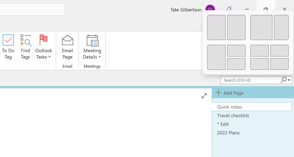 One of my favourite features to teach people in Windows training is Snap. Windows Snap is a feature that allows you to quickly and easily split the screen in two using a keyboard, mouse, pen or touch. So you can quickly get one app to sit perfectly alongside of another. This feature has been a part of windows in a similar form since Windows 7, oover 10 years! Yet surprisingly few people who use Windows on a daily basis at work know about it.